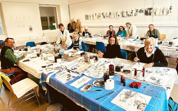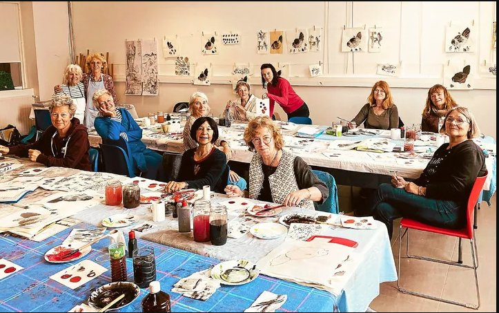 Il procède ensuite à une démonstration, avant de laisser les peintres amateurs reproduire une œuvre de maître, à l’encre et aquarelle chinoise sur du papier de riz.
