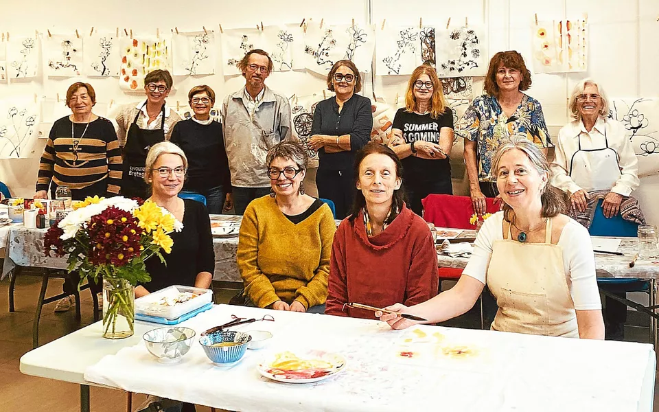 Il procède ensuite à une démonstration, avant de laisser les peintres amateurs reproduire une œuvre de maître, à l’encre et aquarelle chinoise sur du papier de riz.
